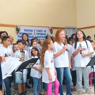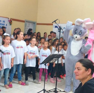 No dia 13.04 realizou-se a Apresentação de Páscoa do Centro Pedro - SLAN do Bairro Santo Antônio, com a presença de representantes da entidade, dos pais e da comunidade, contagiando a todos num clima todo especial que a data sugere. Na ocasião as crianças e adolescentes entoaram canções de Páscoa, assim como música de cunho reflexivo voltadas a Gratidão, Solidariedade e Paz, deixando em cada melodia uma mensagem significativa de Páscoa. Os coelhos, com sua graça, encantaram a festividade, distribuindo ninhos e pacotes, esbanjando simpatia e afeto. As crianças e adolescentes agradecem de coração aos amigos parceiros que através de ações ou doações tornaram a Páscoa ainda mais alegre e saborosa.