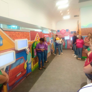 Durante a visita, os profissionais exploraram as diferentes experiências oferecidas pelo espaço, que utiliza a ludicidade para ensinar conceitos financeiros às crianças. O objetivo foi compreender as vivências pedagógicas aplicadas no local e avaliar como essas metodologias podem ser adaptadas à realidade das crianças atendidas pela SLAN.