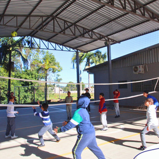 Todas as terças-feiras, os alunos do Centro Pedro Albino Müller participam de aulas de vôlei com profissionais especializados do Clube Bira, que se deslocam até a instituição para oferecer uma vivência esportiva rica em aprendizado, respeito e inclusão.
