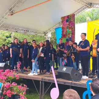 O Conjunto Instrumental da Slan "Cantando e Tocando Alegria de Viver" participou no domingo, dia 25 de setembro, do 7° Concerto da Primavera, realizado no Jardim Botânico de Lajeado. O grupo apresentou em seu repertório canções de diferentes ritmos, envolvendo coral com acompanhamento de instrumentos musicais, contagiando o público com muita alegria, descontração, revelando muitos talentos na habilidade musical. A Slan contou com a participação especial do cantor da banda LaRoots, Jerônimo Schuhl que esteve no palco junto com a filha Maria Antônia, que faz parte da Slan.